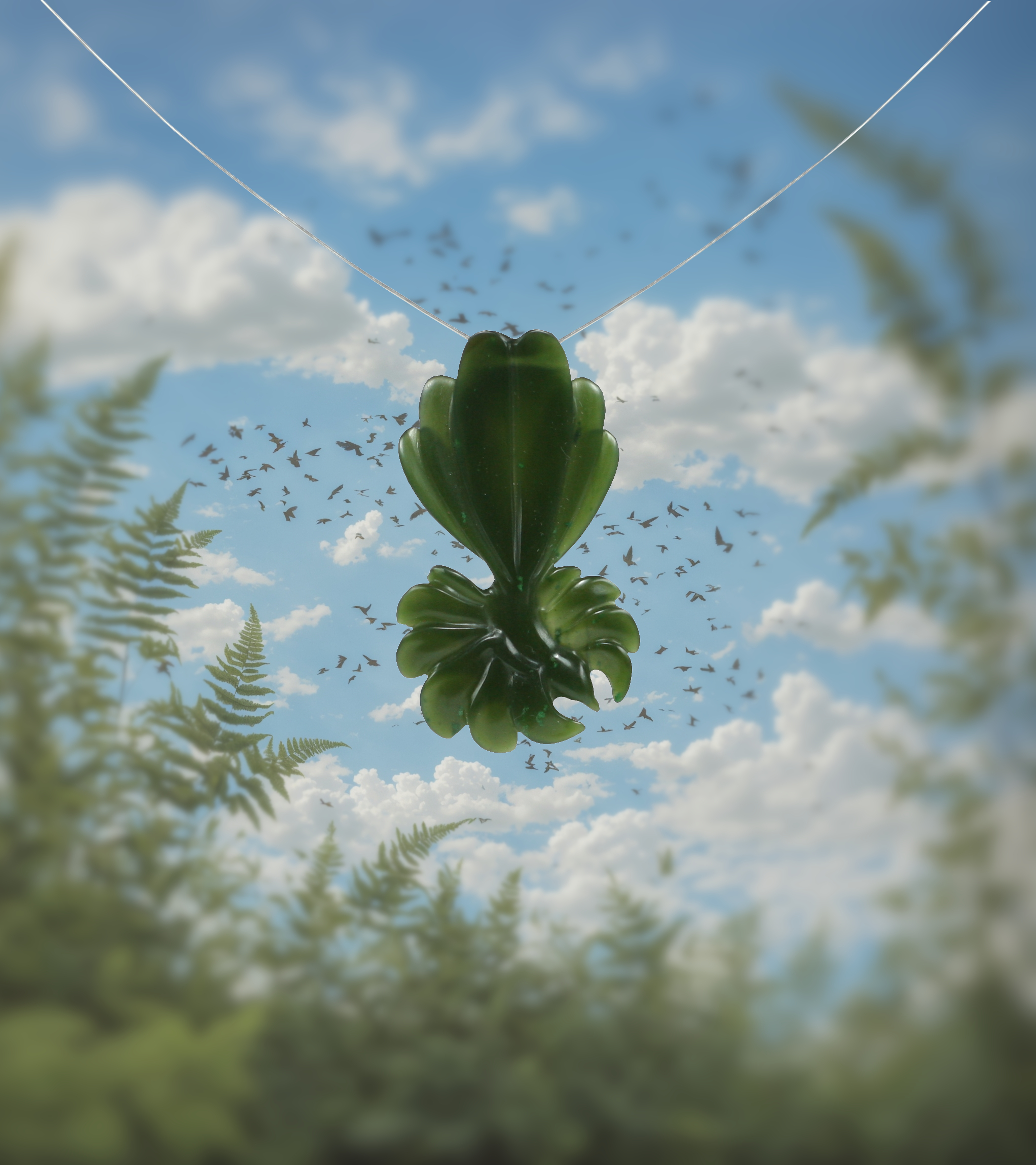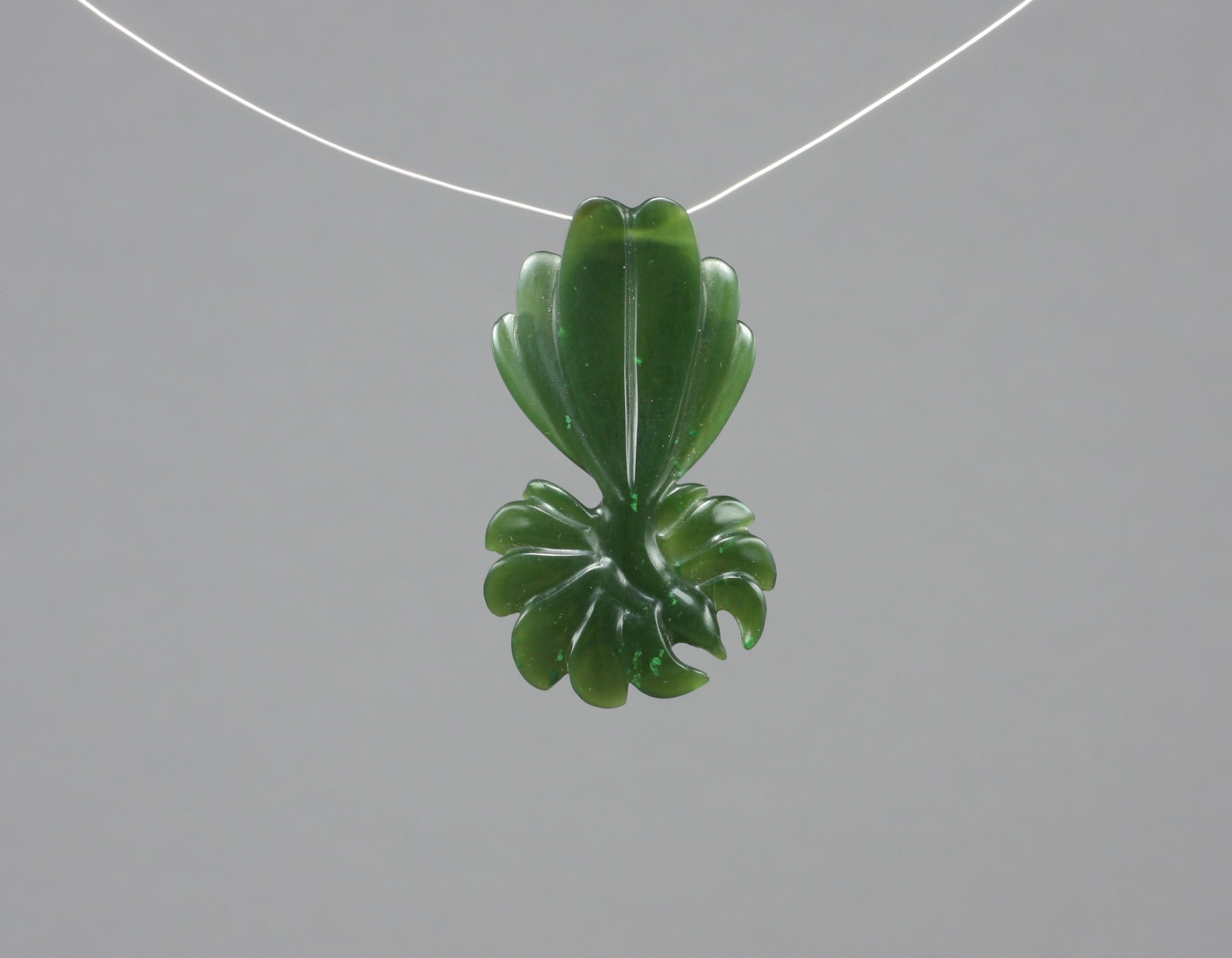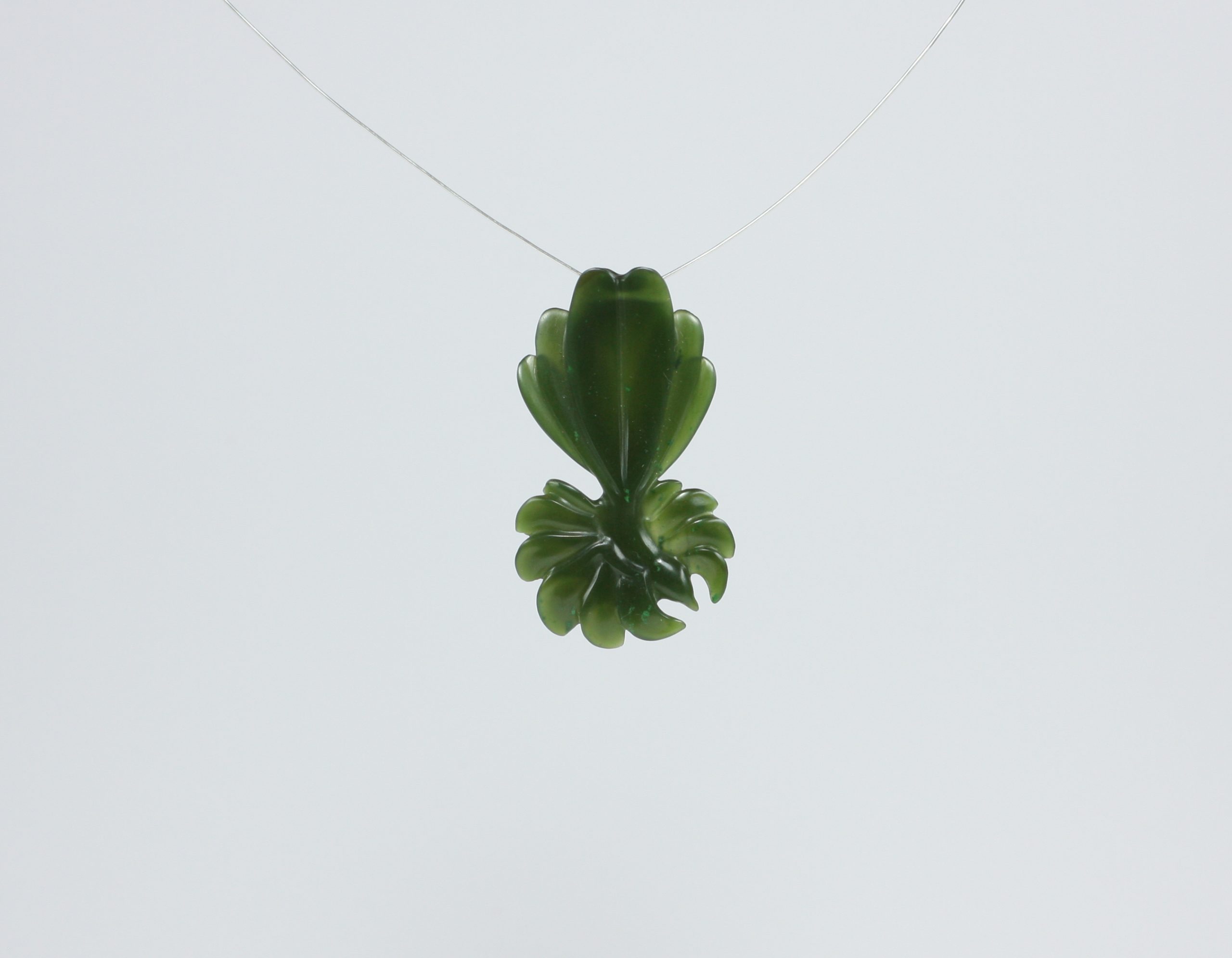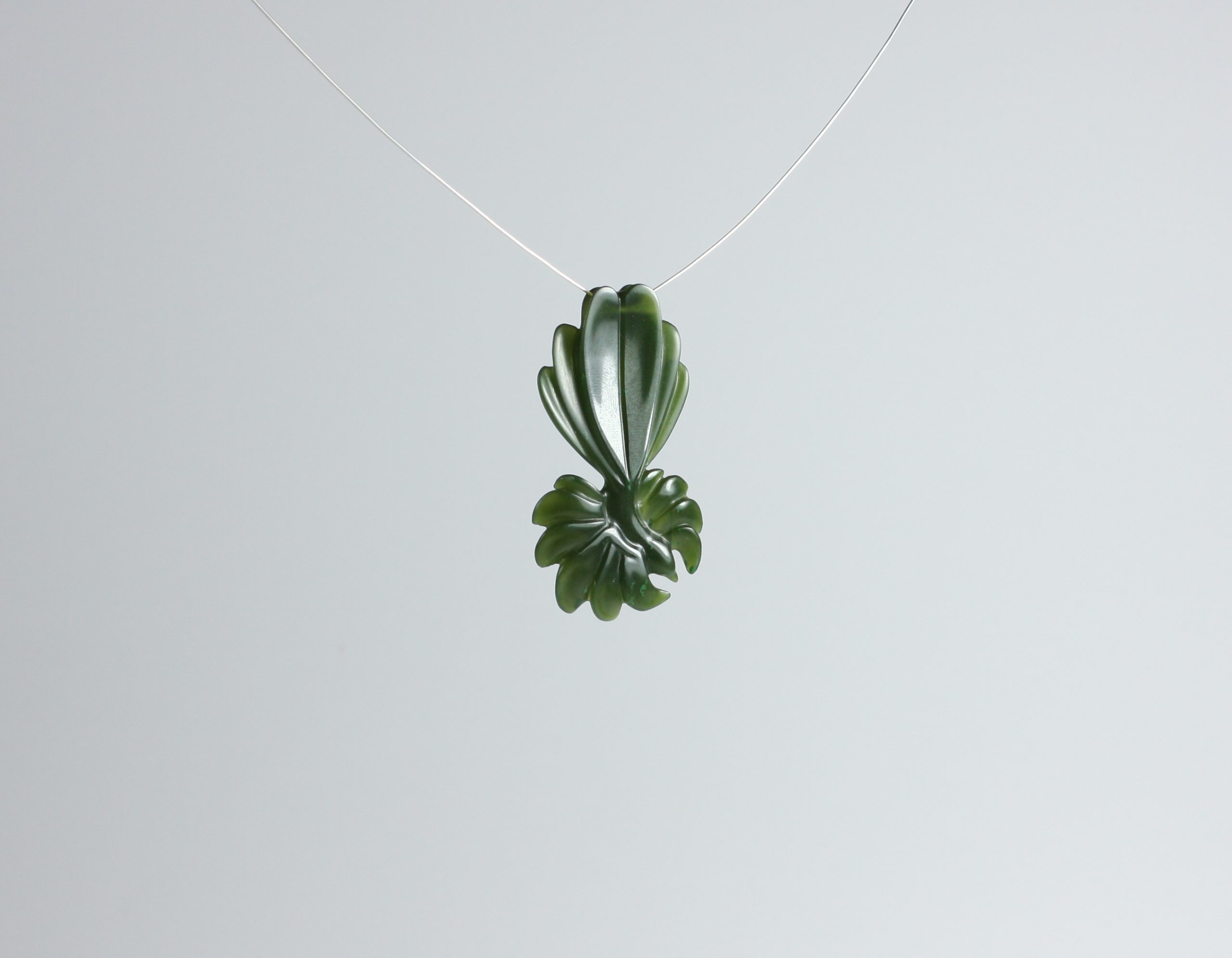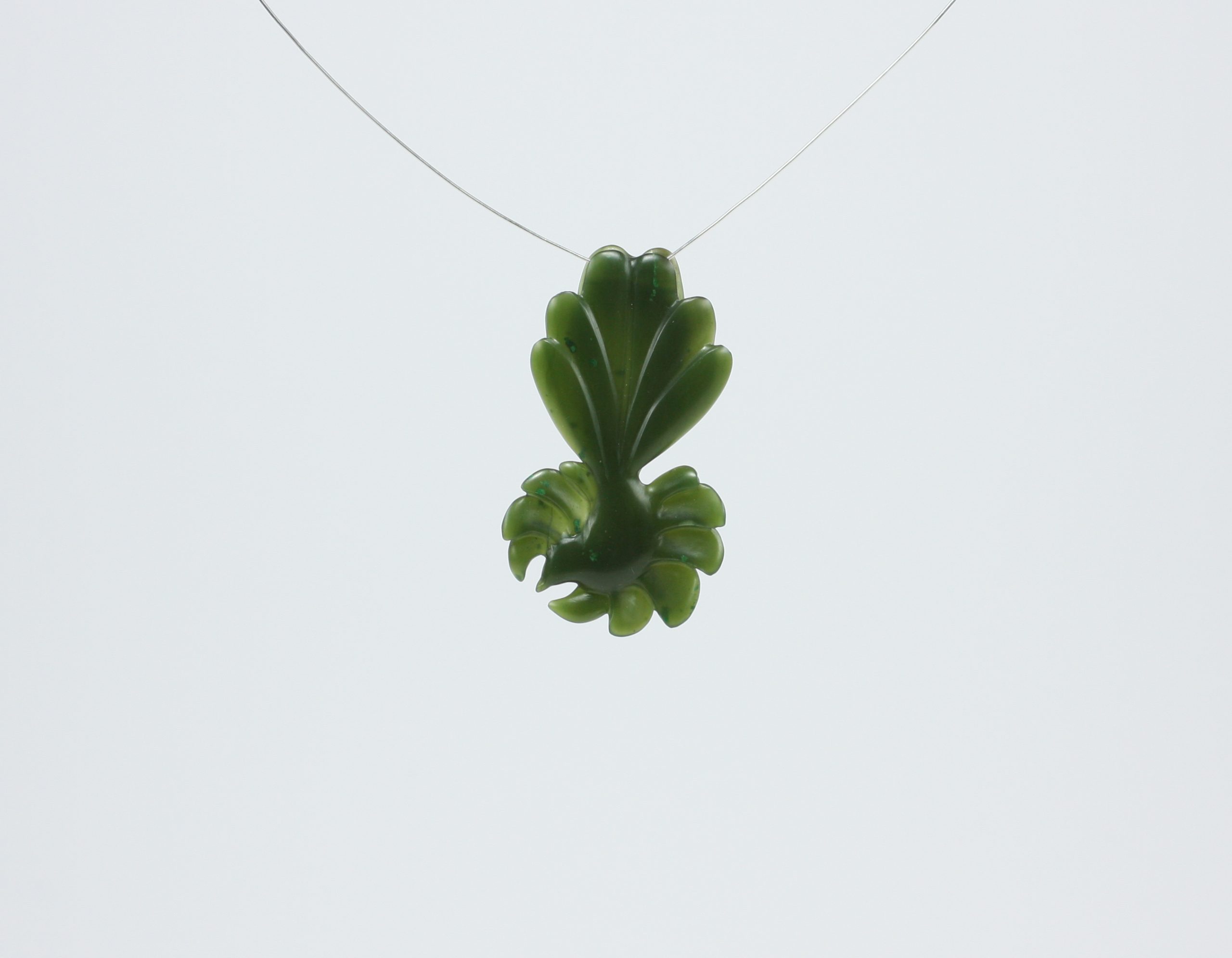 The fantail belongs to a bird species spread all over Australasia, from New Zealand to the heights of Himalaya, and can breed at up to 4000 m of altitude. It’s a non-endangered species, due to his ability to adapt to changing or challenging environments such as deforestation and urban expansion. Their long tail feathers give these birds their famous agility, spread out like a fan whilst flying, these feathers make quick movements and sudden changes in direction possible. Both, the thin piece of BC Jade and the fantail bird in his natural habitat appear delicate, but both are very strong. The dark rich green of the stone is the same colour of the forest, where the fantail lives. The light green freckles that appear here and there around the stone remind me of his characteristic cheekiness: he loves to jump around, like a little dot, seemingly appearing in different places at the same time.